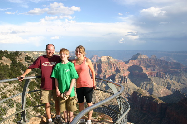 fam at grand canyon Scott, Nicholas and Melanie at Bright Angel Point near the Lodge