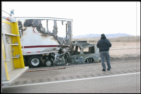 On the way to the Arrow Canyon hike we drove past this accident. Obviously (you can see it from looking at the pictures) a car drove into the back of a semi. …. hmmm…. but we noticed it was off the road. We think the semi driver had the presence of mind to move over after being bashed into by the minvan on the highway,… Read moreWreck… or maybe Crash and Burn?